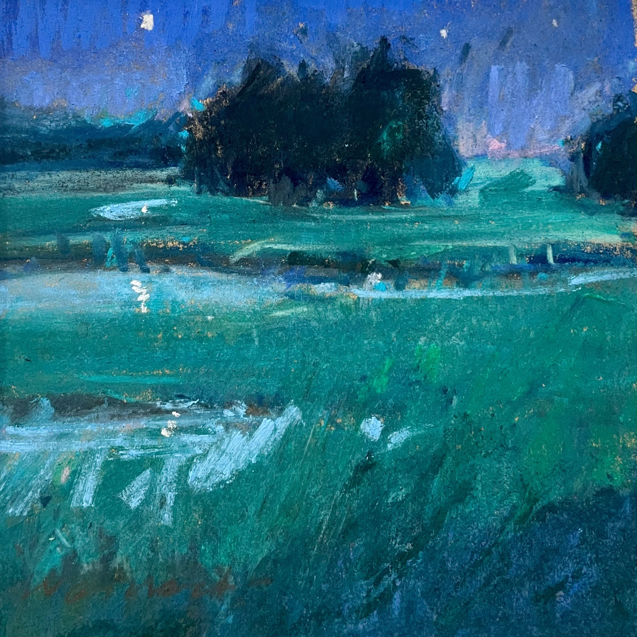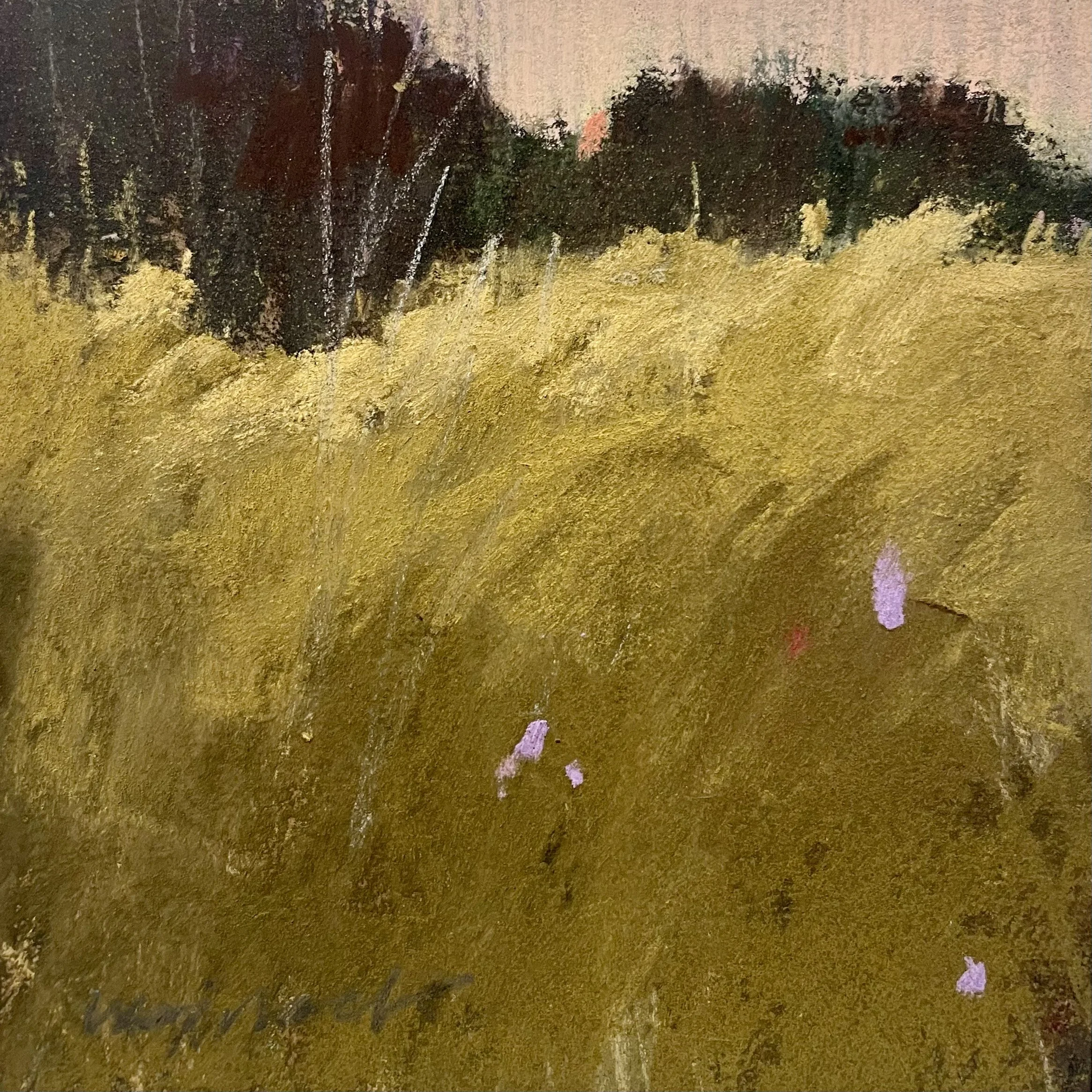 This original pastel “Tall Grasses” is an alla prima painting from the open space in my town and former airport. Playing with scale and color this piece holds special the color of autumn grasses with dots of unexpected lavender. The work reveals new things with every viewing.